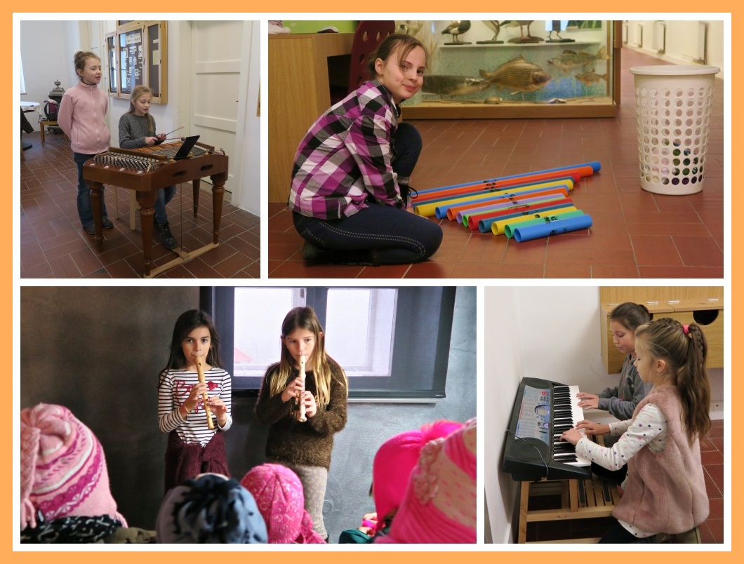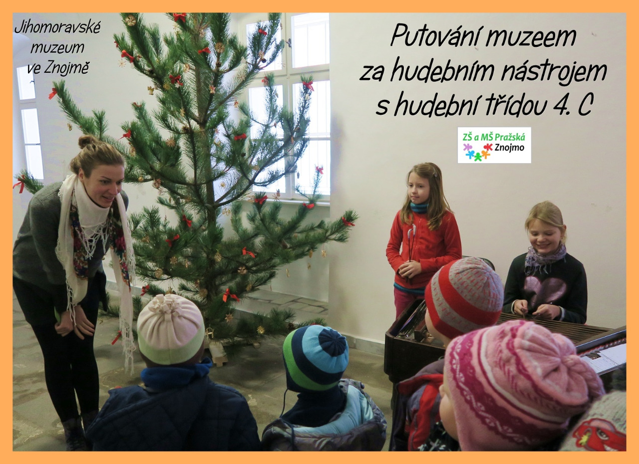 Naše třída 4. C se stala spoluorganizátory edukačního programu pro školy Jihomoravského muzea ve Znojmě. V prostorech minoritského kláštera se ve čtvrtek 8. 12. putovalo muzeem naučnou stezkou posetou hudebními nástroji. Na každém stanovišti čekali hudebníci ze 4. C se svými nástroji. Role učitelů se naši muzikanti ujali velmi profesionálně. Nejen, že dokázali nástroj sami pojmenovat, popsat jeho jednotlivé části, ukázat, jak se na nástroj hraje, ale připravili si pro děti i zajímavosti, soutěže, překvapení i hádanky, aby zjistili, zda si příchozí děti i něco zapamatovaly. V tento den prošlo hudební stezkou během dopoledne po skupinkách 144 dětí, které se zájmem poslouchaly, mohly si vyzkoušet na hudební nástroje zahrát nebo si pohrát a zazpívat v hudební dílničce s rytmickými nástroji. Po zdařilém ukončení této akce bylo domluveno, že bychom na jaře 2017 tuto akci v Jihomoravském muzeu zopakovali. Moc děkujeme paní Monice Mažárové za skvělou organizaci a těšíme se na další spolupráci. Moc chválím děti za vzornou reprezentaci naší školy, za jejich přípravu i výkony, za trpělivost a vzorné chování. Akce byla velice pěkná, příjemná, splnila účel a měla opravdový smysl. Bylo krásné vidět, jak děti učí děti.